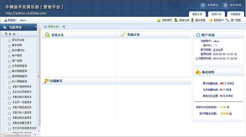 軟件名稱:不倒翁創業俱樂部管理(lǐ)平台
